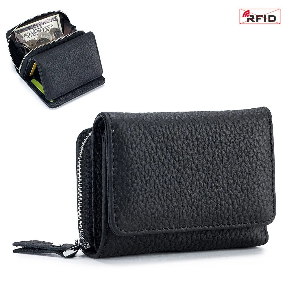 Portafoglio in pelle dal design minimal e moderno, ideale per chi cerca stile e praticità. Dotato di protezione RFID per difendere le tue carte da scansioni indesiderate, mantiene contanti e tessere sempre al sicuro in un formato compatto.